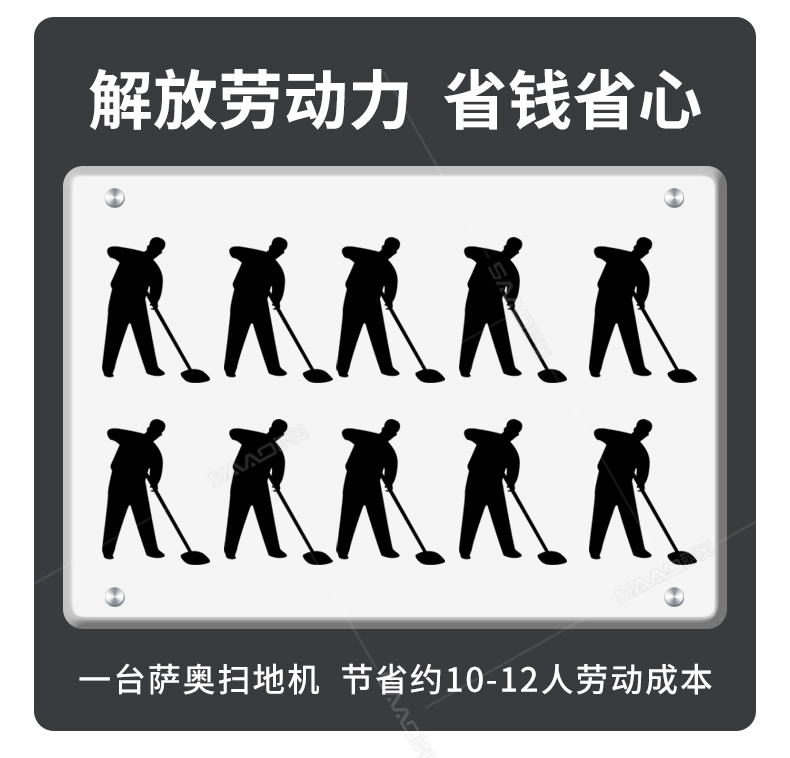 適用于清掃廠區(qū)車間、公園、街道、車站、碼頭、物業(yè)小區(qū)、倉庫、學(xué)校、體育場,機場等區(qū)域。清掃效率是傳統(tǒng)的人工清掃效率的10-12倍,一臺掃地機可代替10-12位清潔工人。