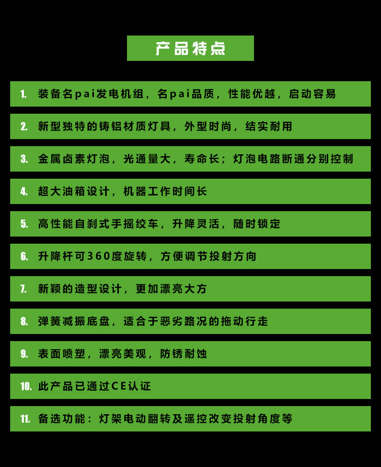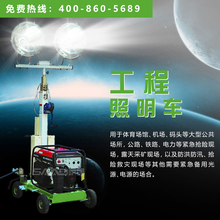 產品名稱:工程照明車 產品型號:SZM-1000A/SCZM-1000A SZM-400A/SCZM-400A 產品介紹: 用于體育場館、機場、碼頭等大型公共場所,公路、鐵路、電力等緊急搶險現場,露天采礦現場,以及防洪防汛、搶險救災現場等其他需要緊急備用光源、電源的場合。
