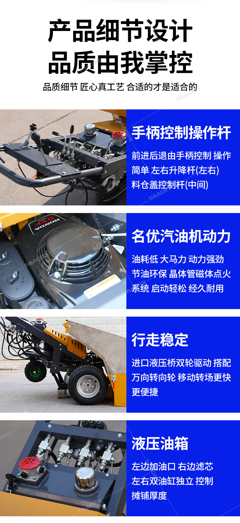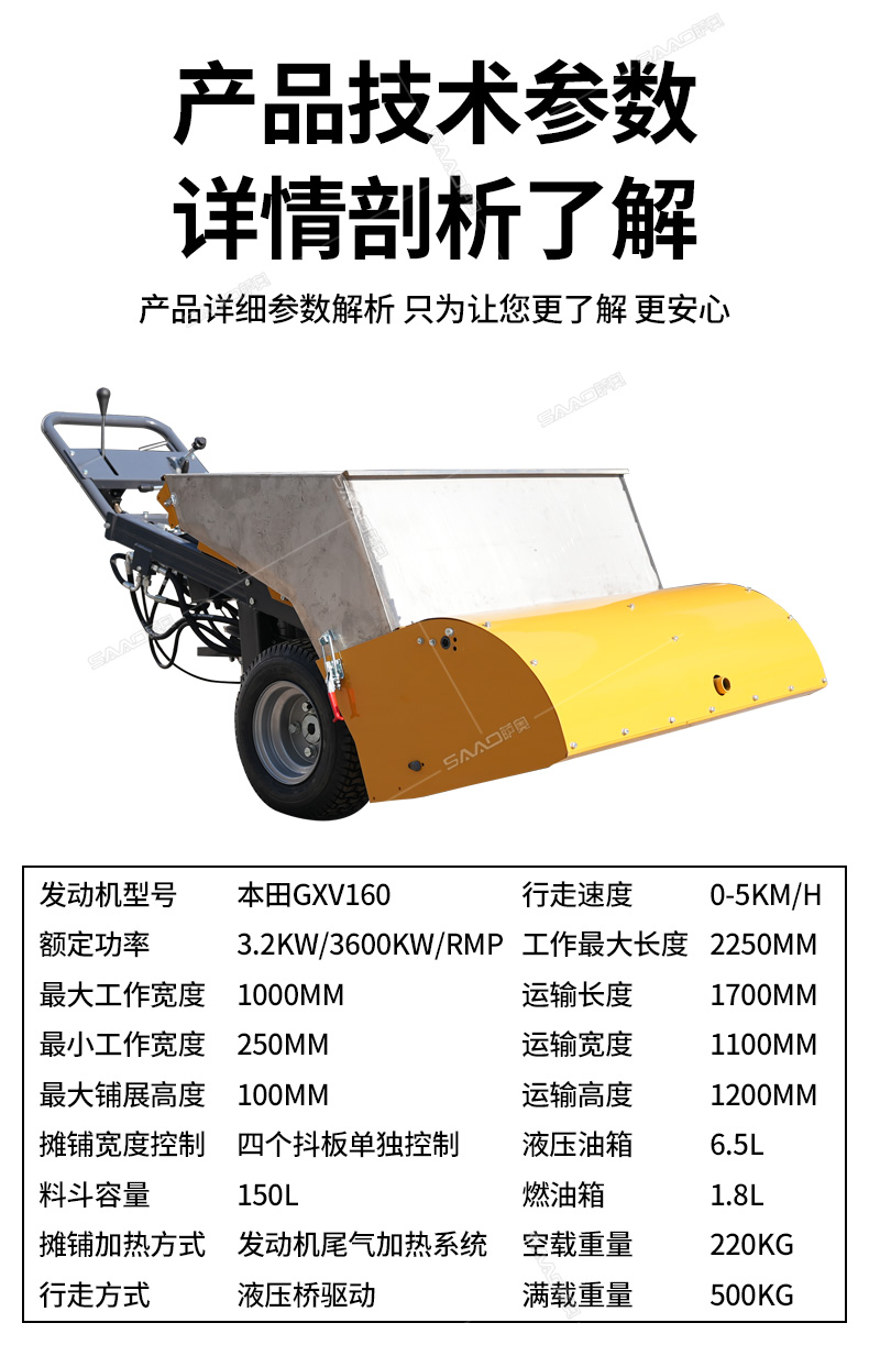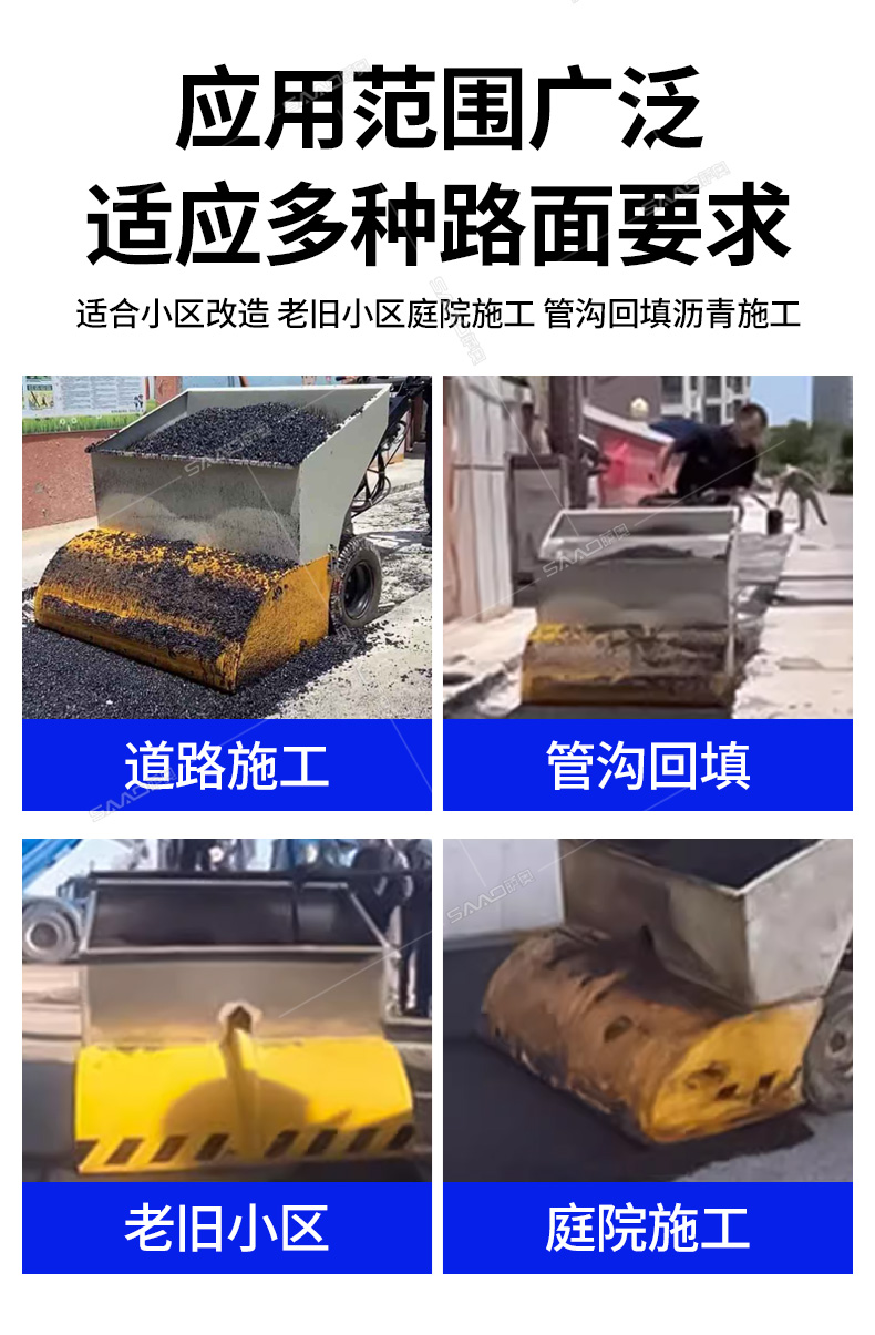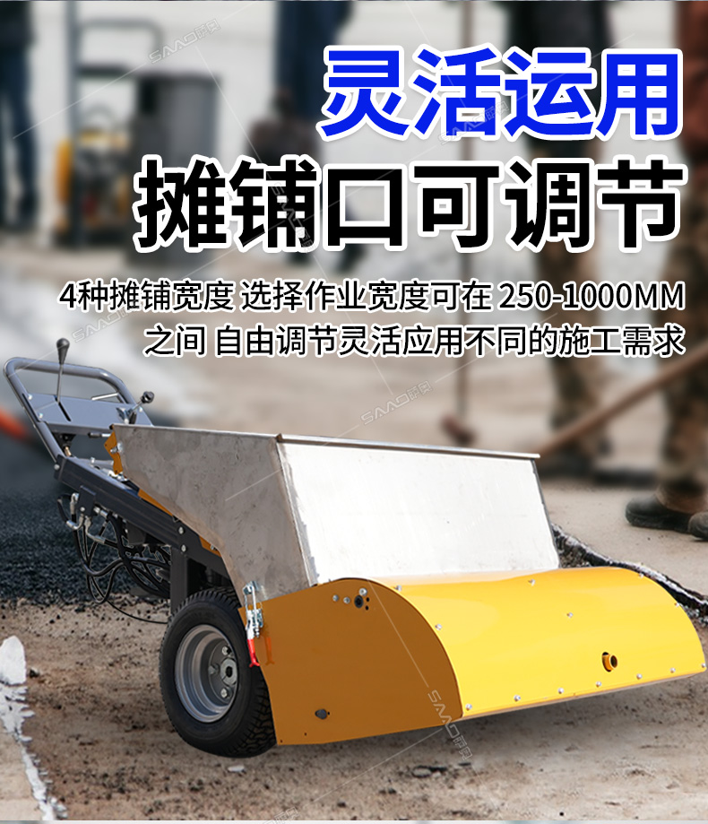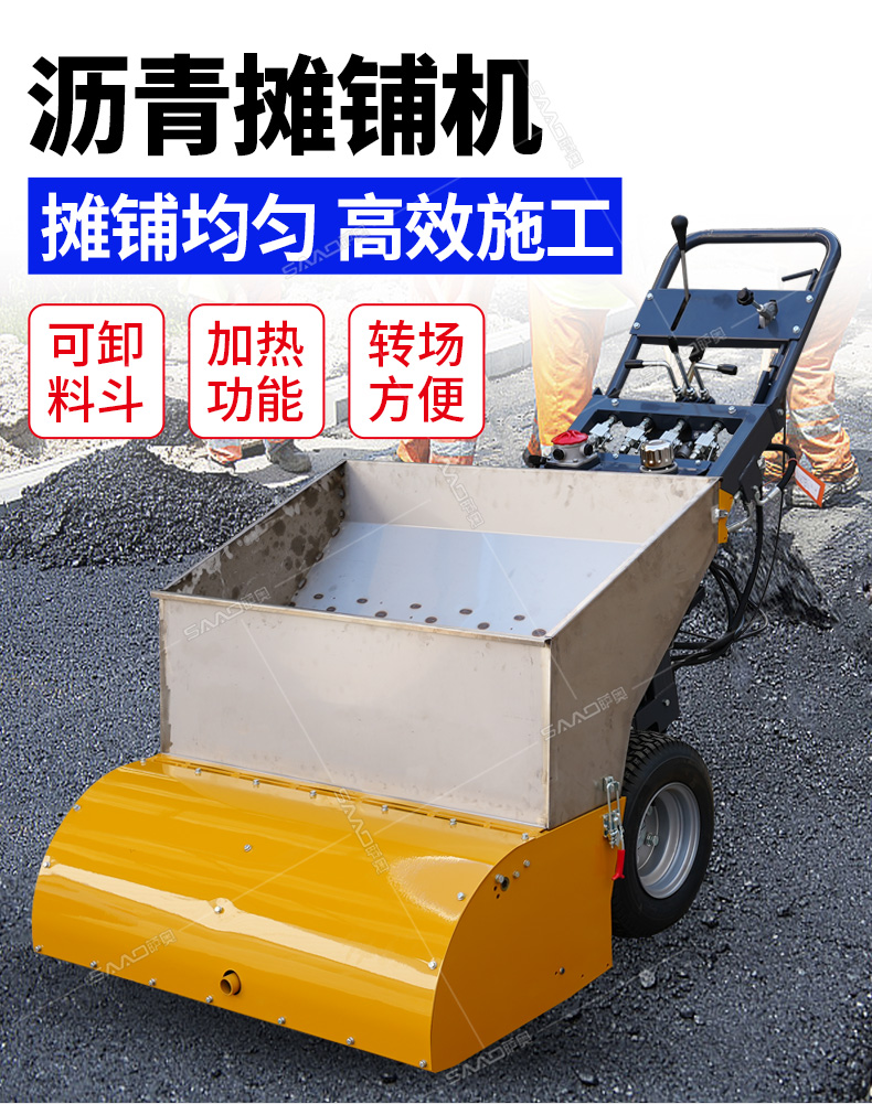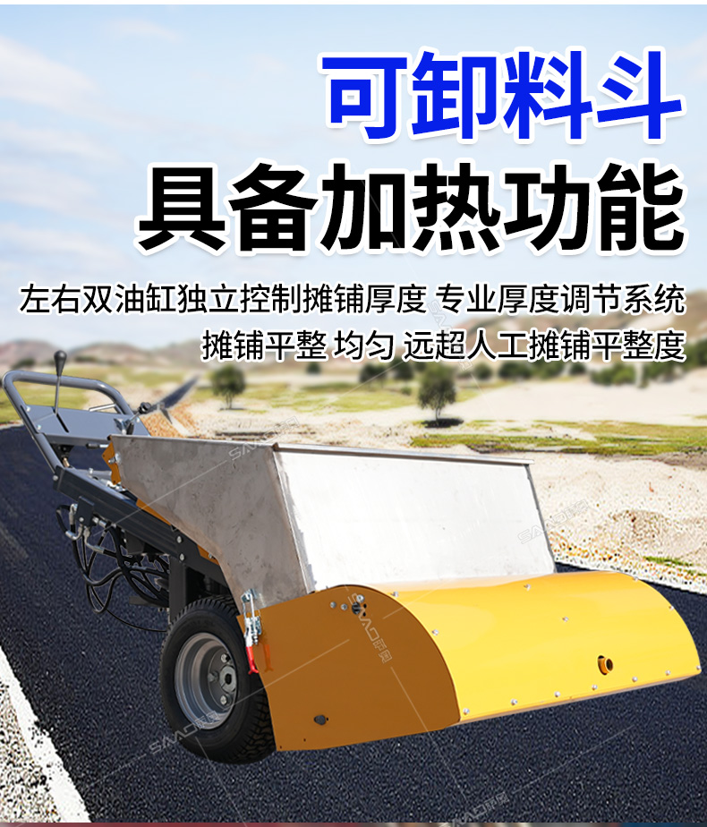 瀝青攤鋪機攤鋪均勻,高效施工,帶有加熱功能。