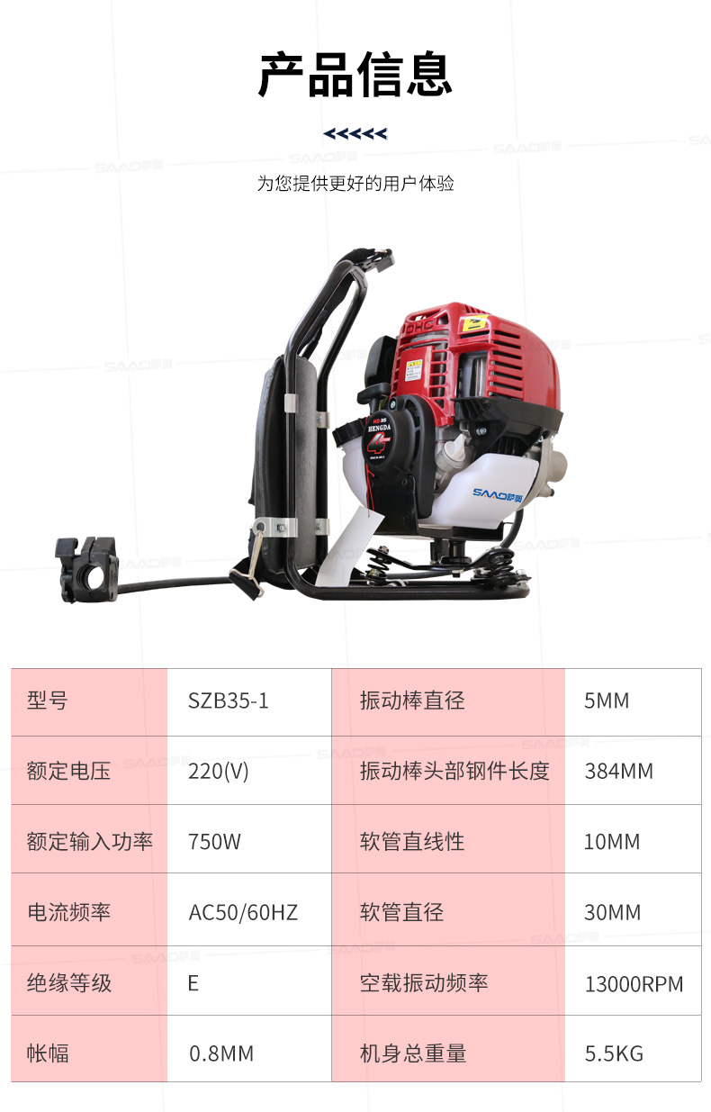 薩奧牌混凝土背負式汽油機振動棒是采用優質汽油機為動力直接驅動,是廣泛適用于道路、橋梁、隧道、樓層基礎和各種混凝土梁、柱及預制構件現場澆注施工的重要工具,是偏遠無電