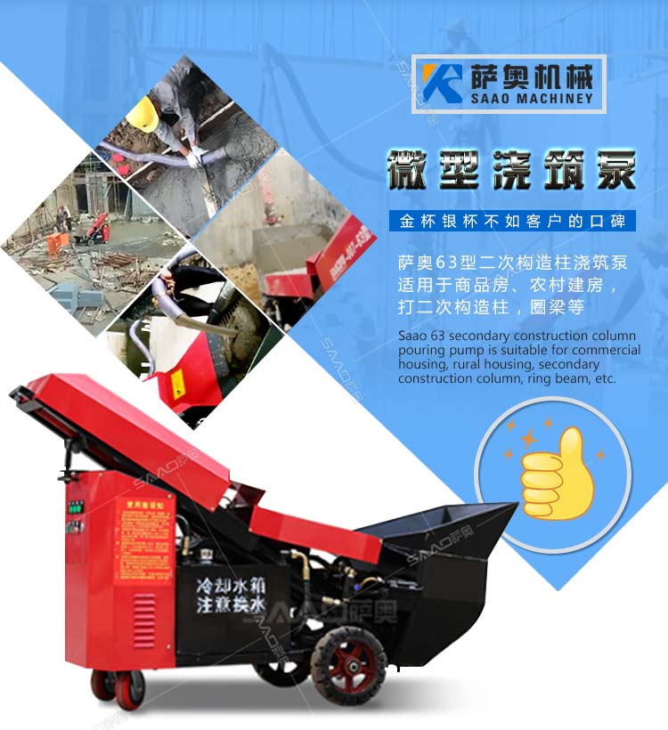 薩奧63型二次構造柱澆筑泵適用于商品房、農村建房、打二次構造柱,圈梁等。