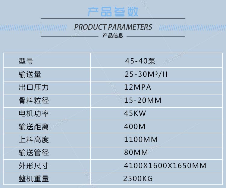 細石混凝土輸送泵采用加粗料缸,讓機械每一次循環(huán)出料多20%。