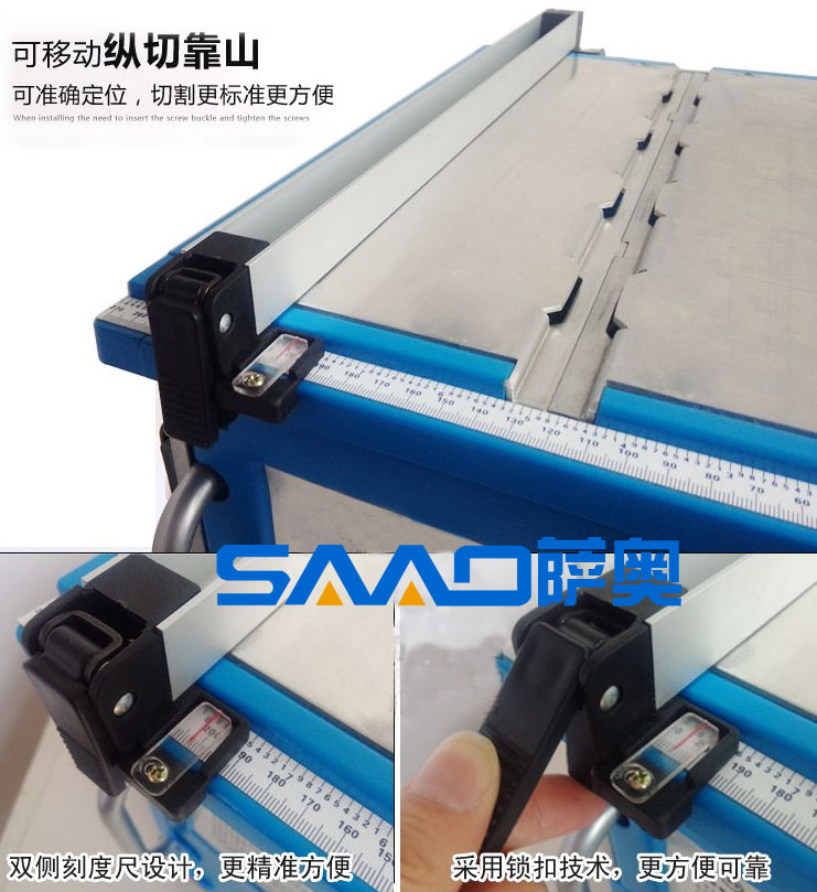 4、工作臺面開創(chuàng)鐵框架鋁臺面,抗沖擊,不變形,高平面度,臺面雙側帶刻度設計,確保地木制品切割時的精度;