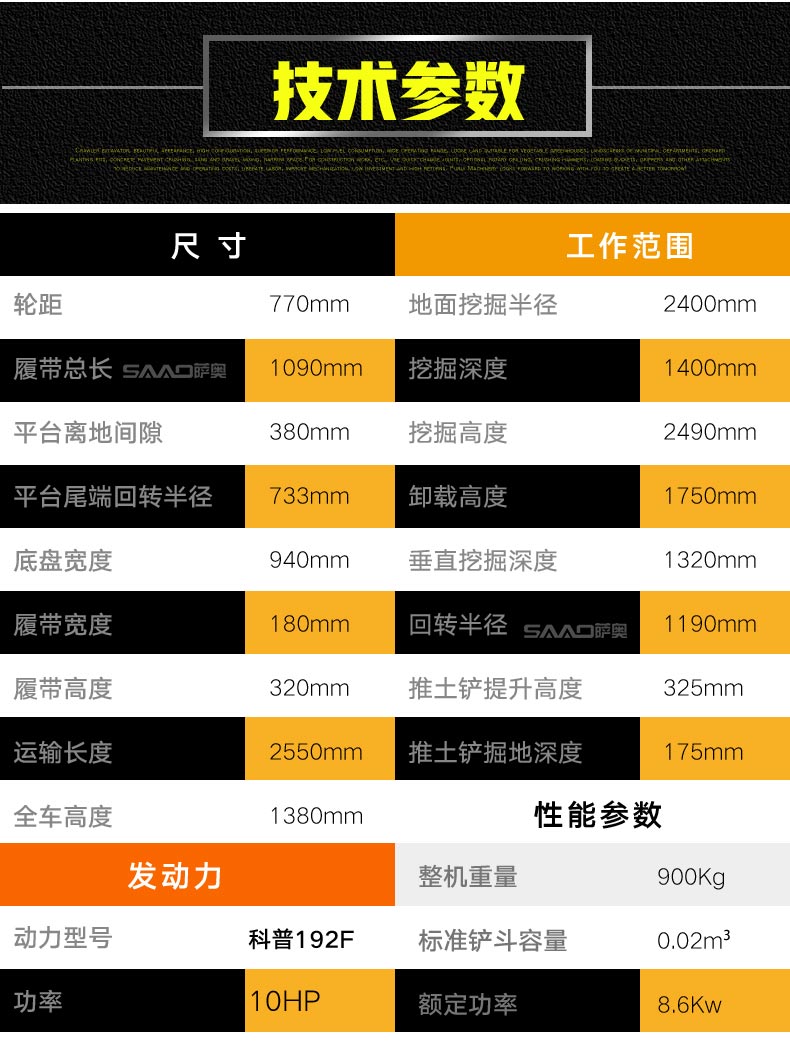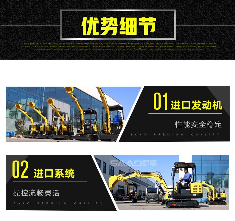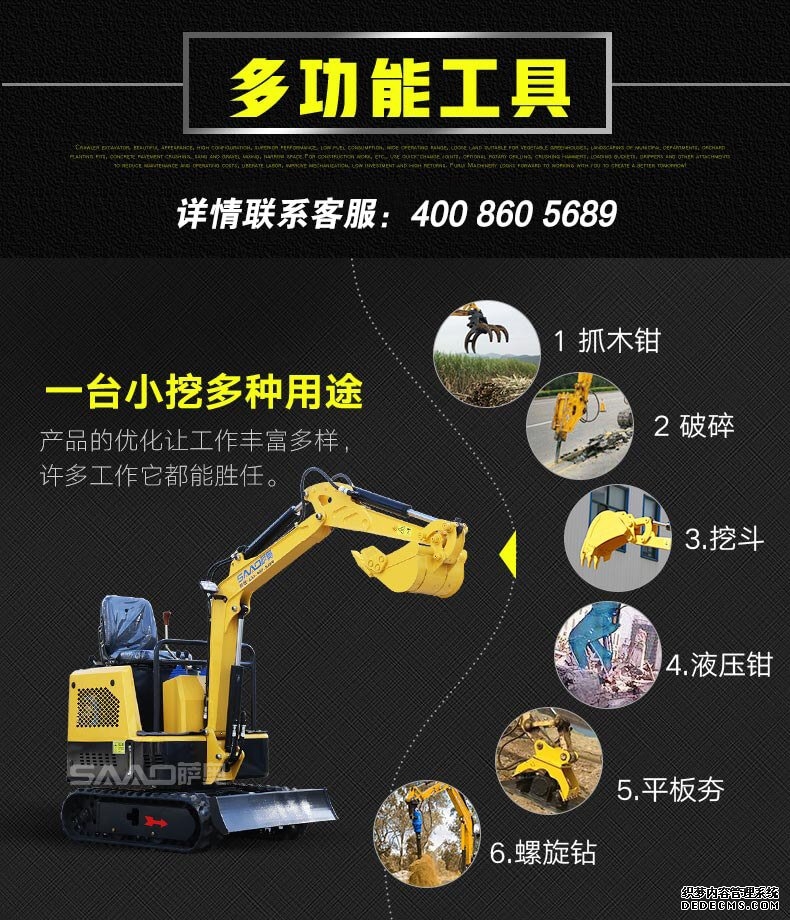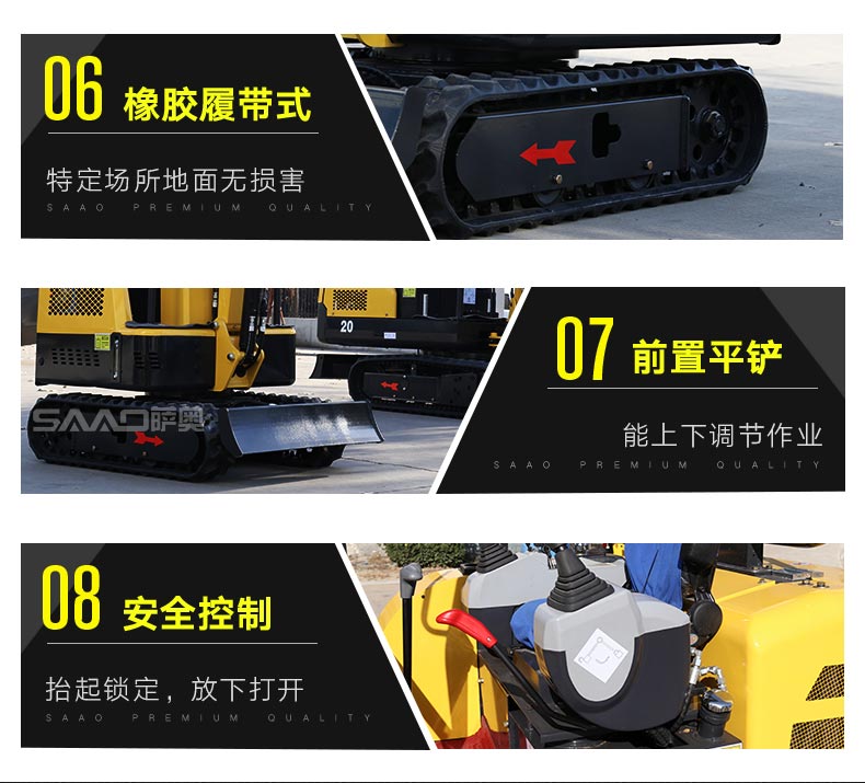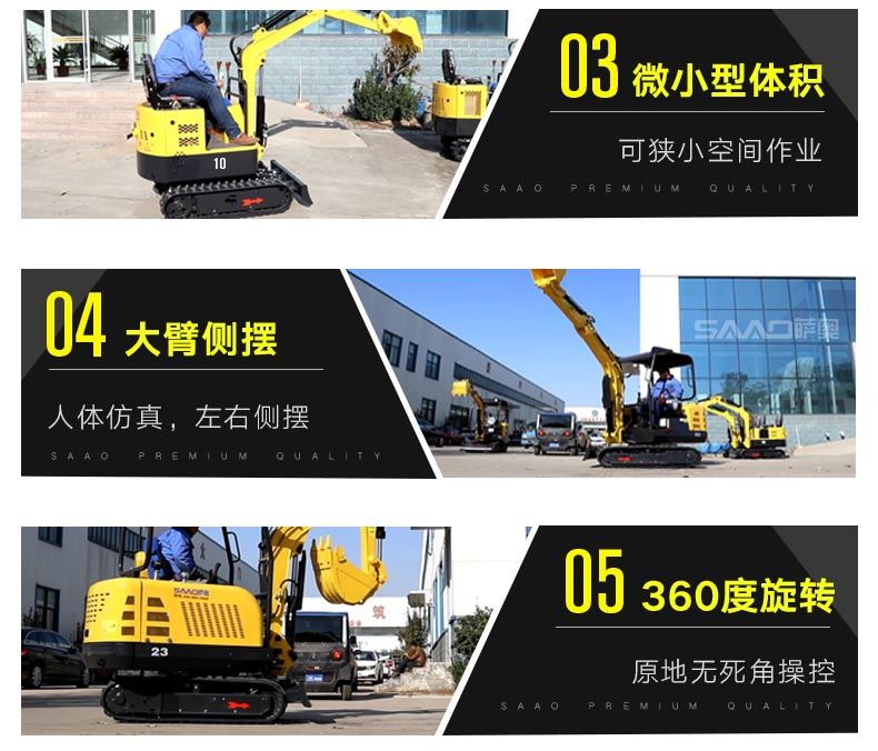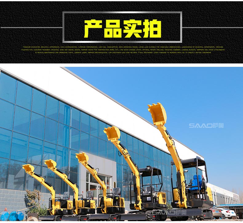 該產品外觀漂亮、配置高、性能優越、油耗低、作業范圍廣.適合蔬菜大棚的土地疏松,市政部門的園林綠化、果園苗圃栽挖坑,混凝土路面破碎,砂石料攪拌,空間狹小的施工作業等,使用快換接頭,可選配旋挖鉆,破碎錘、裝載斗、抓具等各種屬具,降低維護及作業成本,解放勞動力,提高機械化程度,低投資、高回報。薩奧機械期待與您共創美好明天!