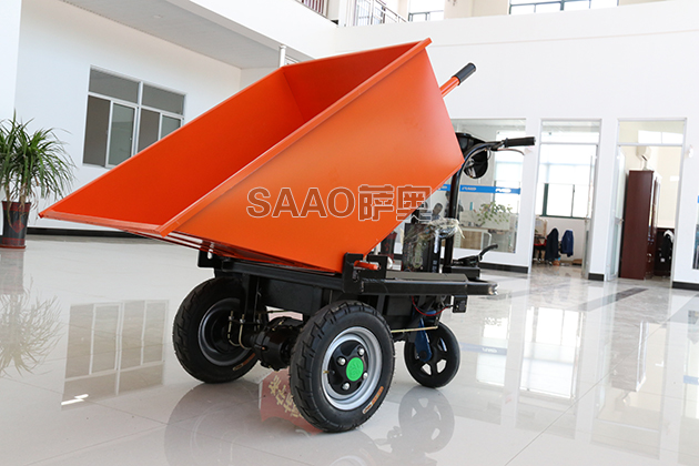 新型電動斗車相比于傳統的翻斗車改用了電力推動,前進、后退兩檔操作,告別了過去用人力推車,比較費力,人員勞動強度大等弊病。新型電動斗車由人員控制方向,手柄控制速度自動形式,爬坡能力強,路面不平的地方也可以行駛。