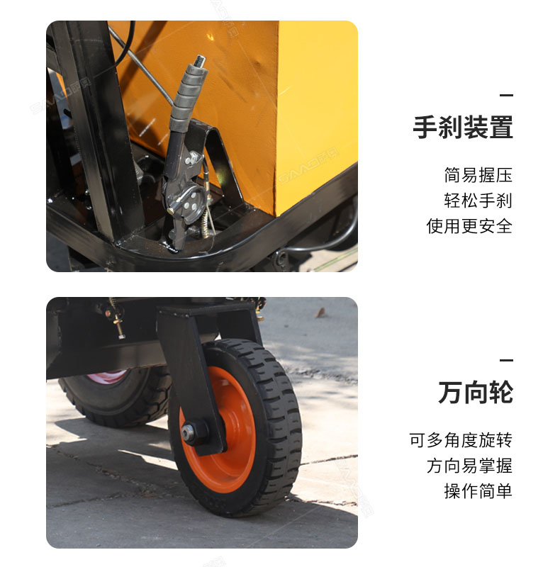 產品介紹: 此款車適用于建筑工地、室內裝修、養殖場、工廠等場所,運輸沙子、水泥、土方、混凝土、建筑垃圾生活垃圾、養殖場動物糞便、飼料等,體積小操作簡單靈活,可原地360度轉圈,可進入樓層、樓道、電梯、吊籃等各種狹小空間作業,是您必不可少的裝卸助手。