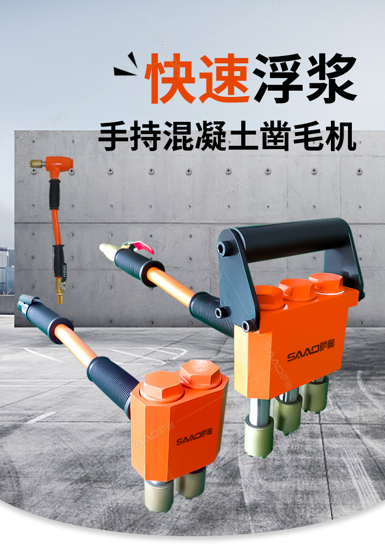 雙頭混凝土鑿毛機 2個頭鑿毛機 手持式雙頭鑿毛機 手持式雙頭鑿毛機主要用于 混凝土剔鑿,水泥表面的打點、粗糙、清除浮漿;兩次鋪裝前清除舊的混凝土。 手持式雙頭鑿毛機是利用