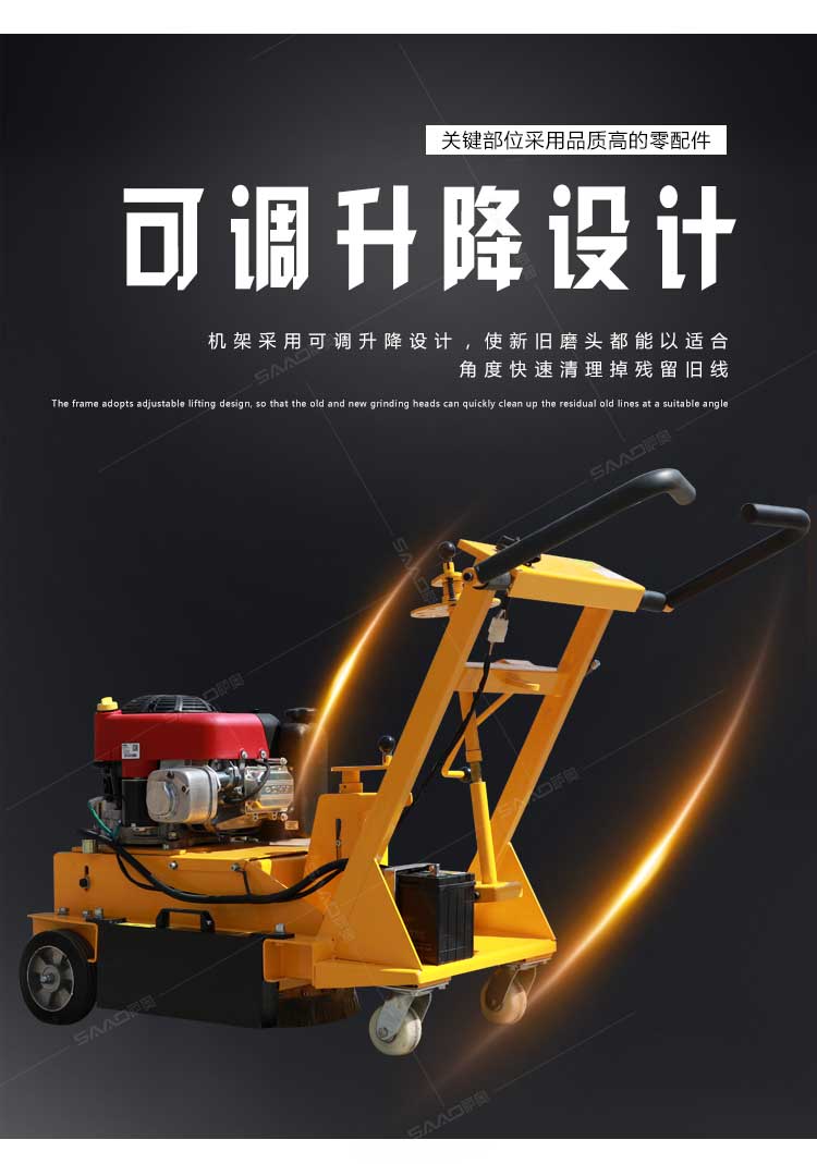 在道路重新劃線施工前需要對舊的斑馬線進行清理,本產品就是對道路舊斑馬線清理的專用除線設備,可以輕松除掉熱熔型漆和冷涂型漆等各類劃線漆,作業效率高,操作簡單。使用范