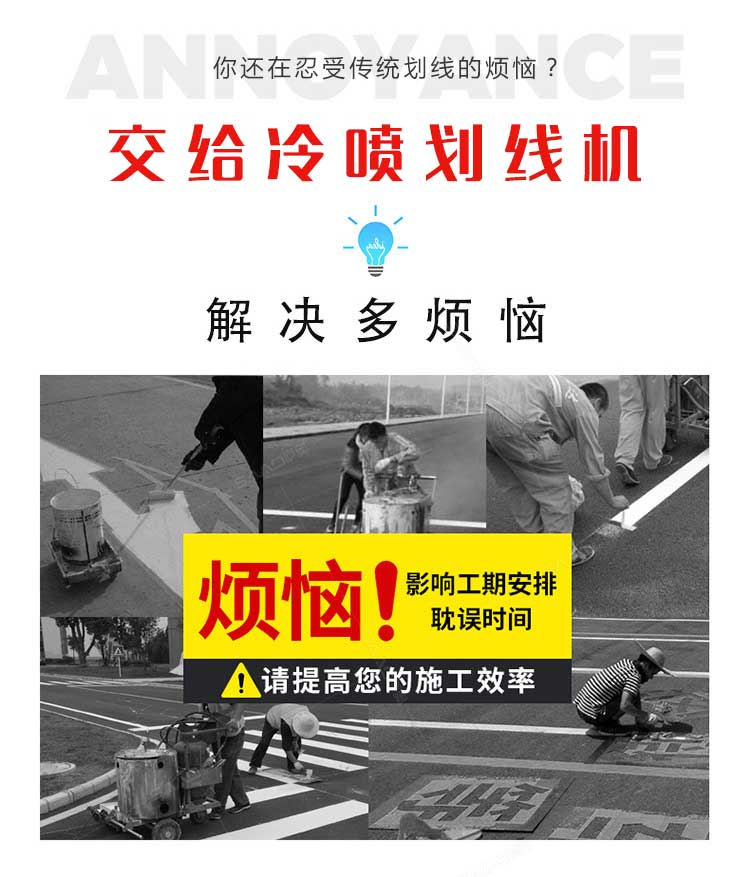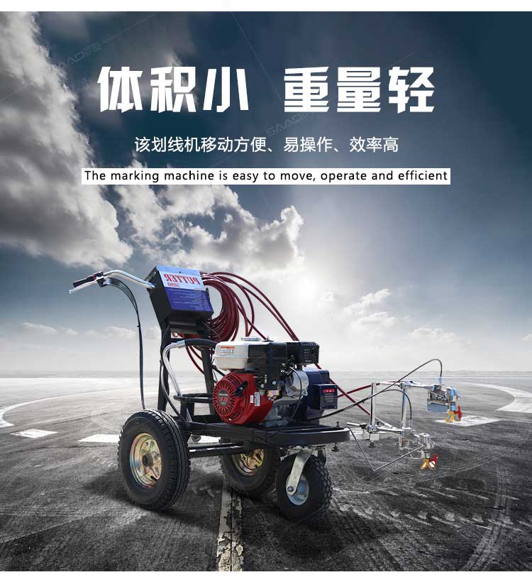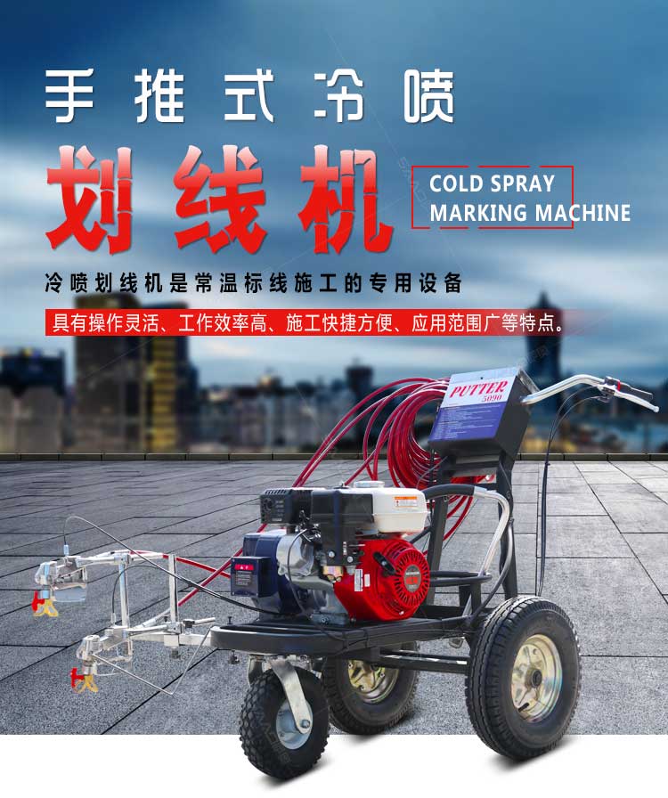 產(chǎn)品介紹: 冷噴劃線(xiàn)機(jī)是常溫標(biāo)線(xiàn)施工的專(zhuān)用設(shè)備,噴出的線(xiàn)型清晰、流暢、飽滿(mǎn)、均勻,主要用于公路、停車(chē)場(chǎng)、機(jī)場(chǎng)、加油站、公司廠區(qū)等涂畫(huà)直線(xiàn)、虛線(xiàn)、曲線(xiàn)、斑馬線(xiàn)、文字、