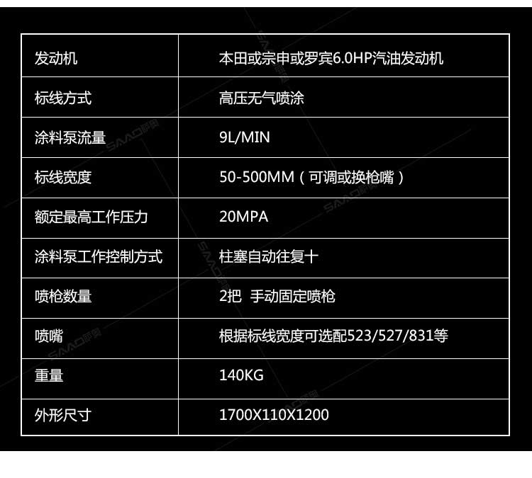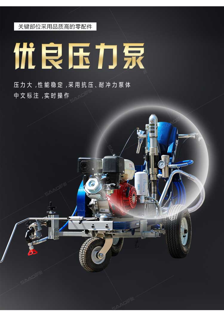 產品介紹: 手推常溫標線機是常溫標線施工的專用設備,噴出的線型清晰、流暢、飽滿、均勻,主要用于公路、停車場、機場、加油站、公司廠區等涂畫直線、虛線、曲線、斑馬線、文