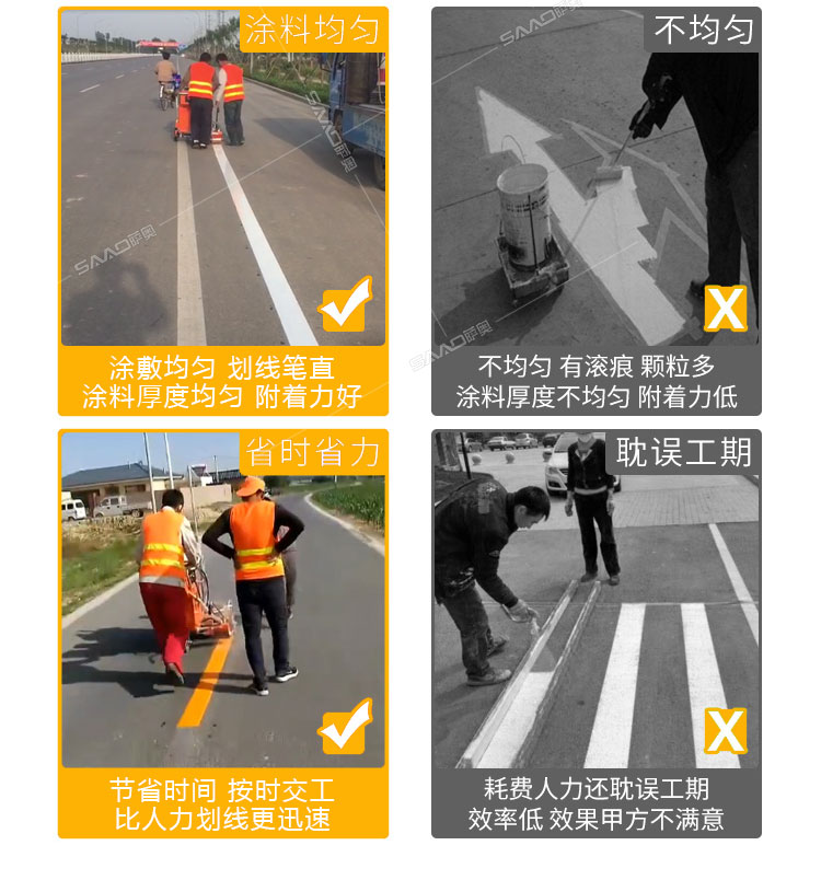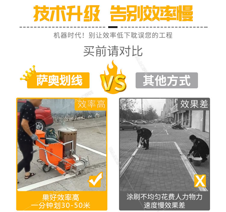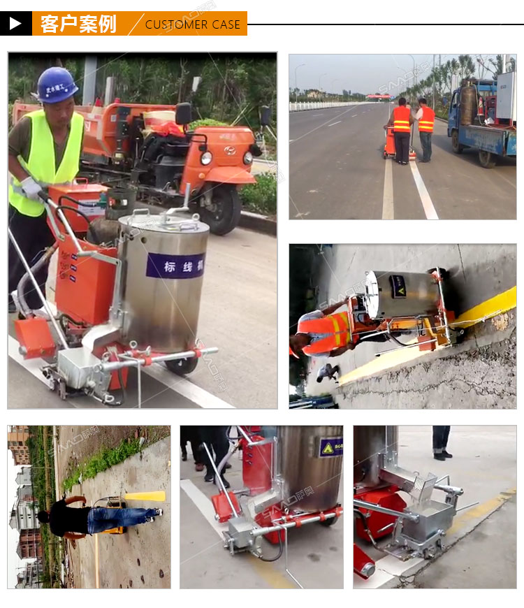 手推式熱熔劃線一體機,一種廣泛應用于道路、高整公路、停車場、廣場和跑道的在平整的地面上劃出不同約束、指引和警示等規則限制標志的路面施工機械。劃線機以其快速、高效、