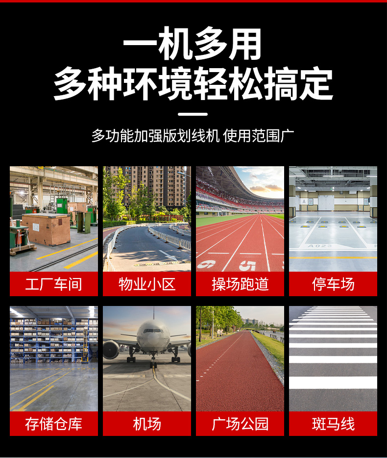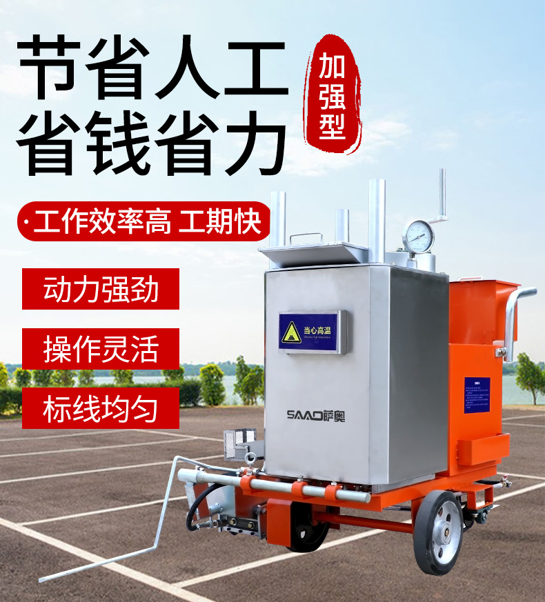 一:產品用途 多功能熱熔劃線機是我公司根據市場需求,獨立研發生產的一款新型劃線機,該機集熔料與劃線一體,可獨立完成各類線型的施劃。對工程量較小零散復雜的停車位、場區