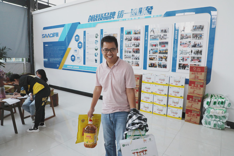 為了表達公司對全體職工的關(guān)愛之情,感謝大家的辛勤付出,9月28日下午,薩奧機械為全體職工發(fā)放了中秋節(jié)福利,將精心挑選的一箱箱禮包送到每一位員工的手中,同時也送去了公司對廣大職工的濃濃關(guān)愛和深深祝福。