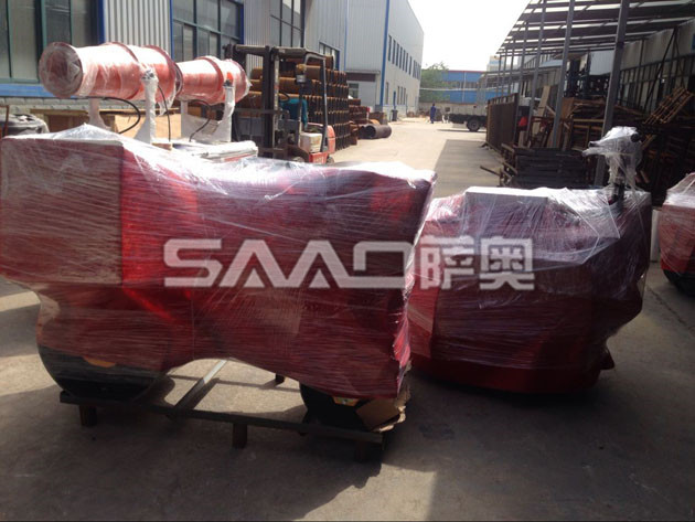 此次發(fā)貨的高壓霧炮,通過炮狀水箱向外噴射出細(xì)密的水霧,可將空氣中細(xì)小的顆粒粉塵有效吸附,進(jìn)而達(dá)到凈化空氣、降塵除霾的作用。環(huán)保部門對我公司研發(fā)生產(chǎn)霧炮的測試,“霧炮”可以將空氣中的PM10濃度降低15%左右。
