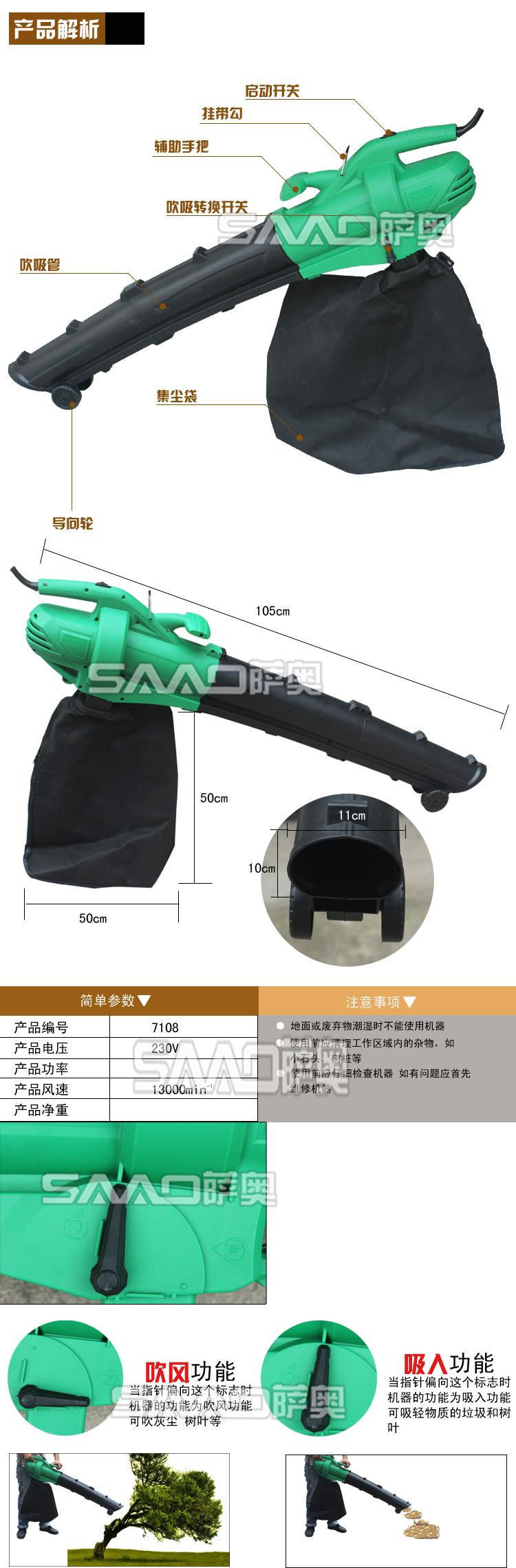 2.3000W功率,真正的大功率,大吸力,大吹力,大容量收集袋