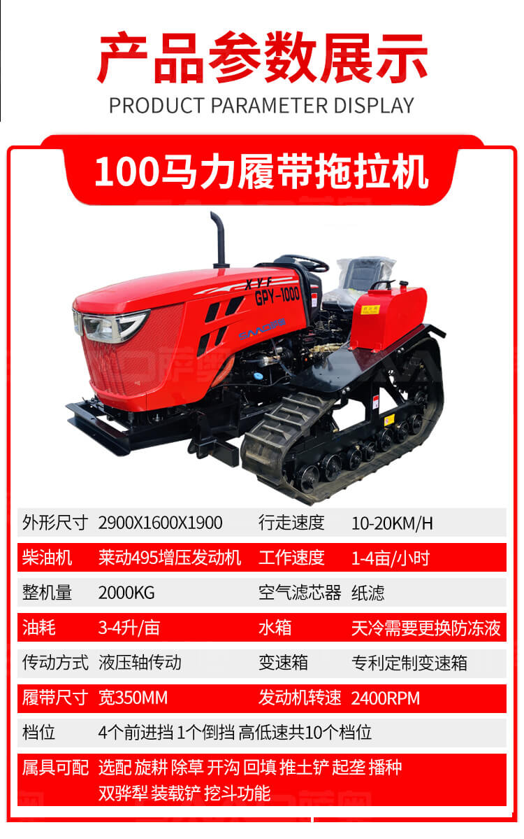 履帶拖拉機本機能完成耕、耙作業,具有碎土能力強、耕后地表平坦等特點。