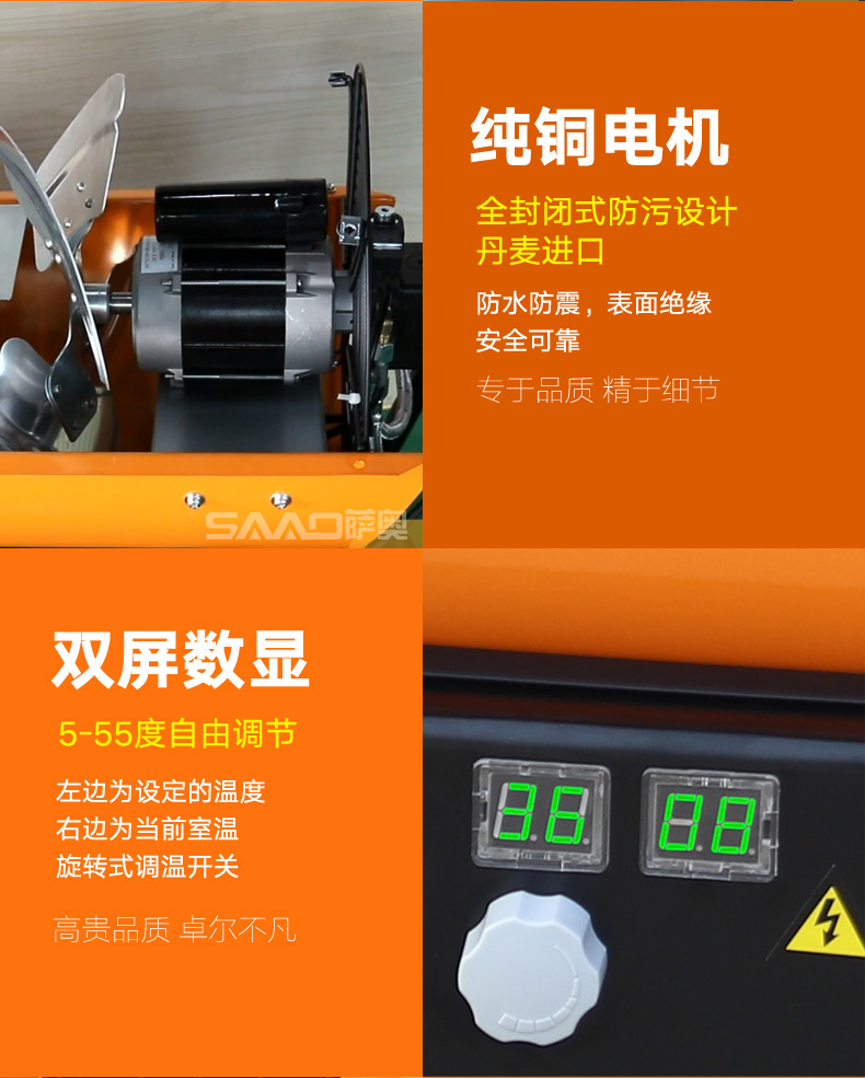 我廠專業生產溫室大棚暖風機,養殖場專用暖風機,15KW/30KW電暖風機,20KW/30KW/70KW/80KW燃油暖風機,型號齊全,全國發貨!過熱保護,恒溫,質量保證!如需了解請致電24小時免費電話:400-860-5689