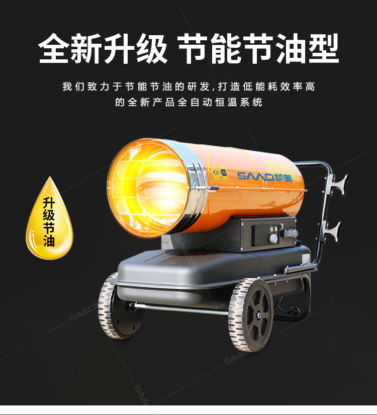 燃油暖風機可控制區間溫度為5-90度,風量更大,升溫更快,在木材的烘干等方面有巨大的功效,非常適合大面積的工業場所使用。