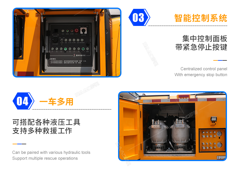 該皮卡多功能救援車作為大功率移動式的液壓動力源,可驅動多達百余種不同功能的液壓工具進行作業
