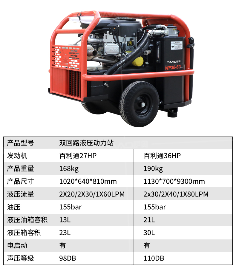 【產品介紹】 在公路市政養護、燃氣自來水搶修、地震和消防救援作業中提供方便可靠的動力源。 【產品特點】 進口原裝液壓馬達,壽命長,壓力高,流量大; 優質快速接口,連接液