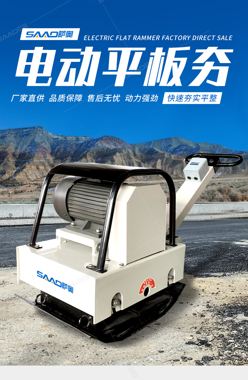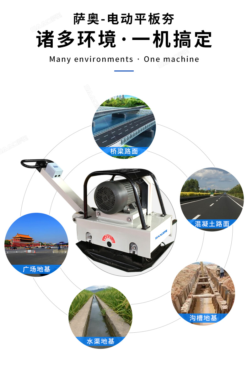 電動平板夯是一種理想的混凝土基礎面層及一般混凝土構件表面振實的工具,也是一種理想的夯實土壤、砂土、碎石的機械。可廣泛的使用于建筑工程,預制構件廠,筑路工程及堤防工