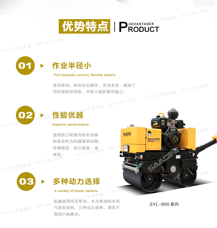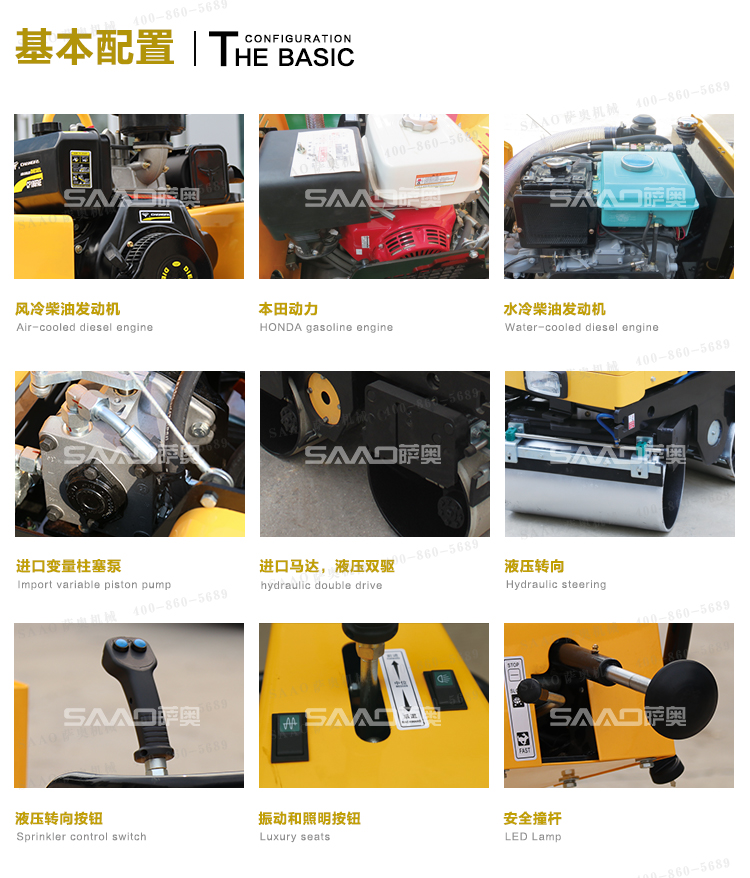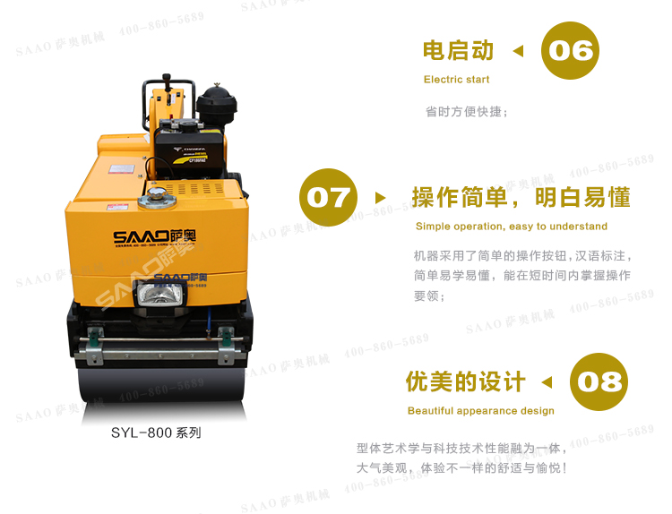 雙驅雙振,保證了整體的壓實和爬坡能力;表面噴塑,漂亮美觀,防銹耐蝕;