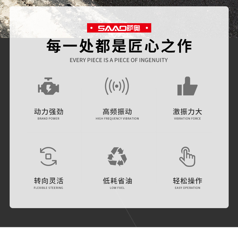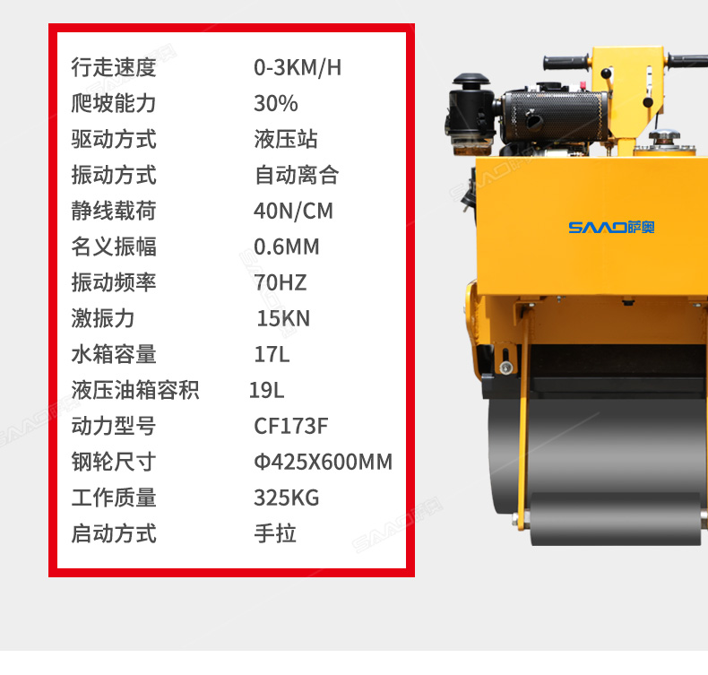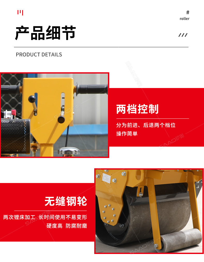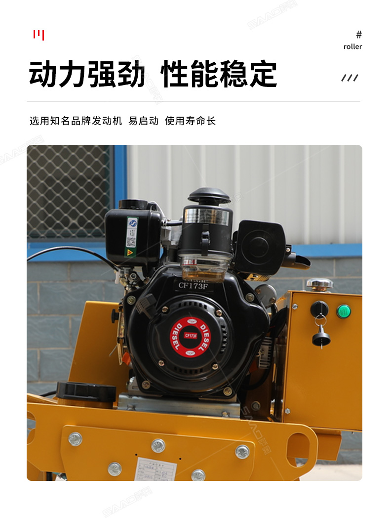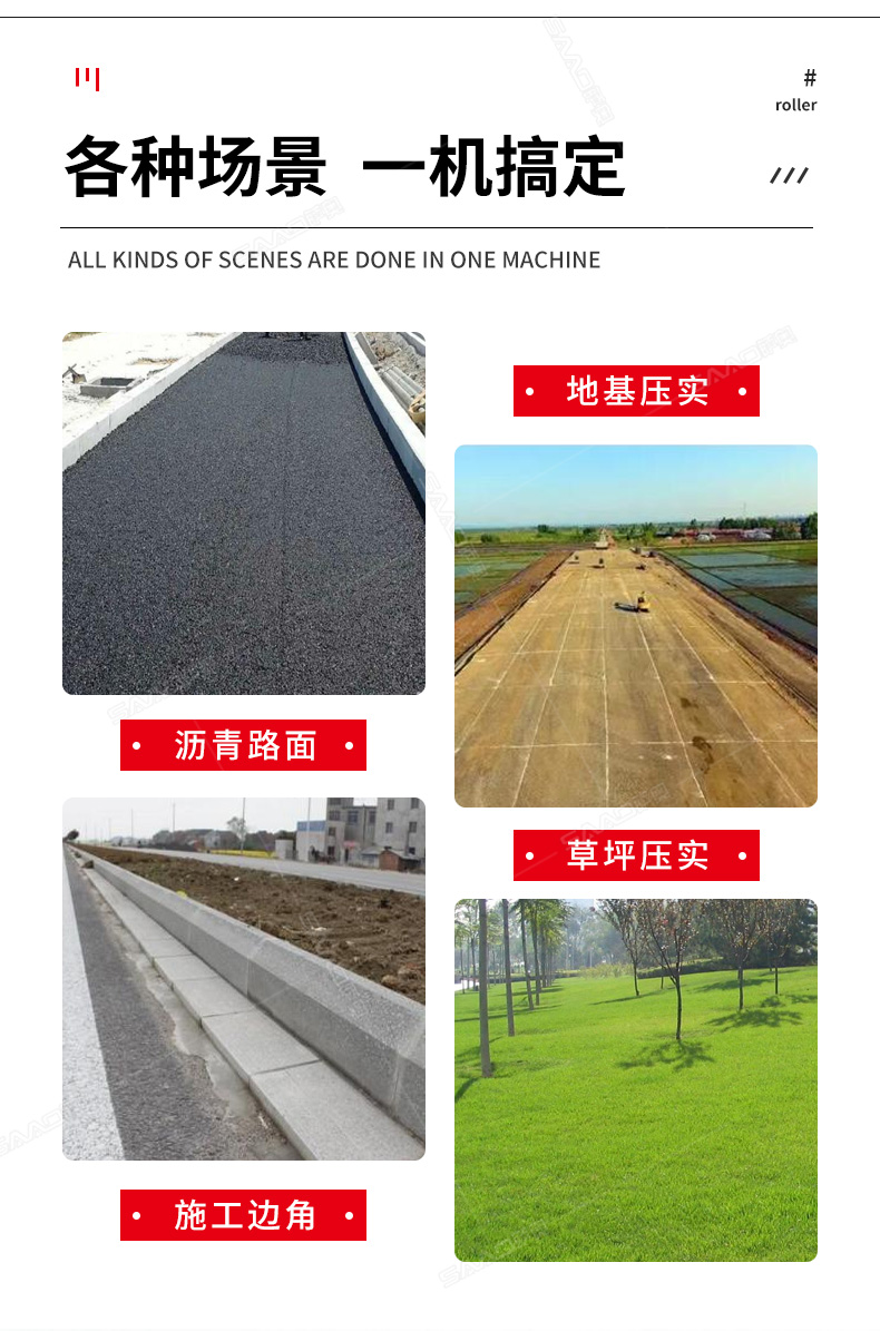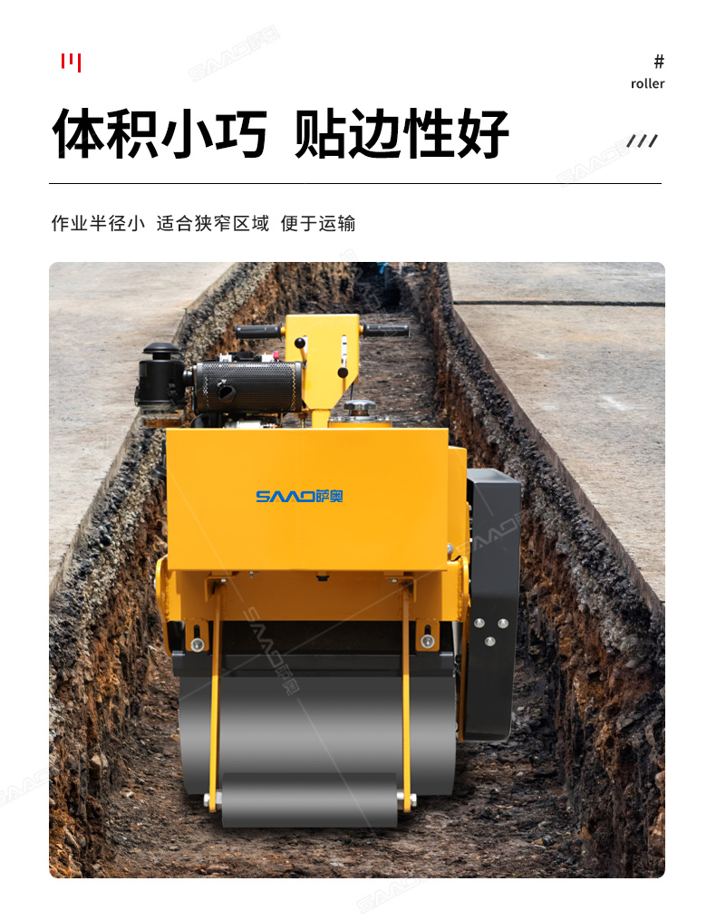主要用于溝渠基礎,道路,體育場地的壓實整平,也可用于壓實瀝青表面的作業。