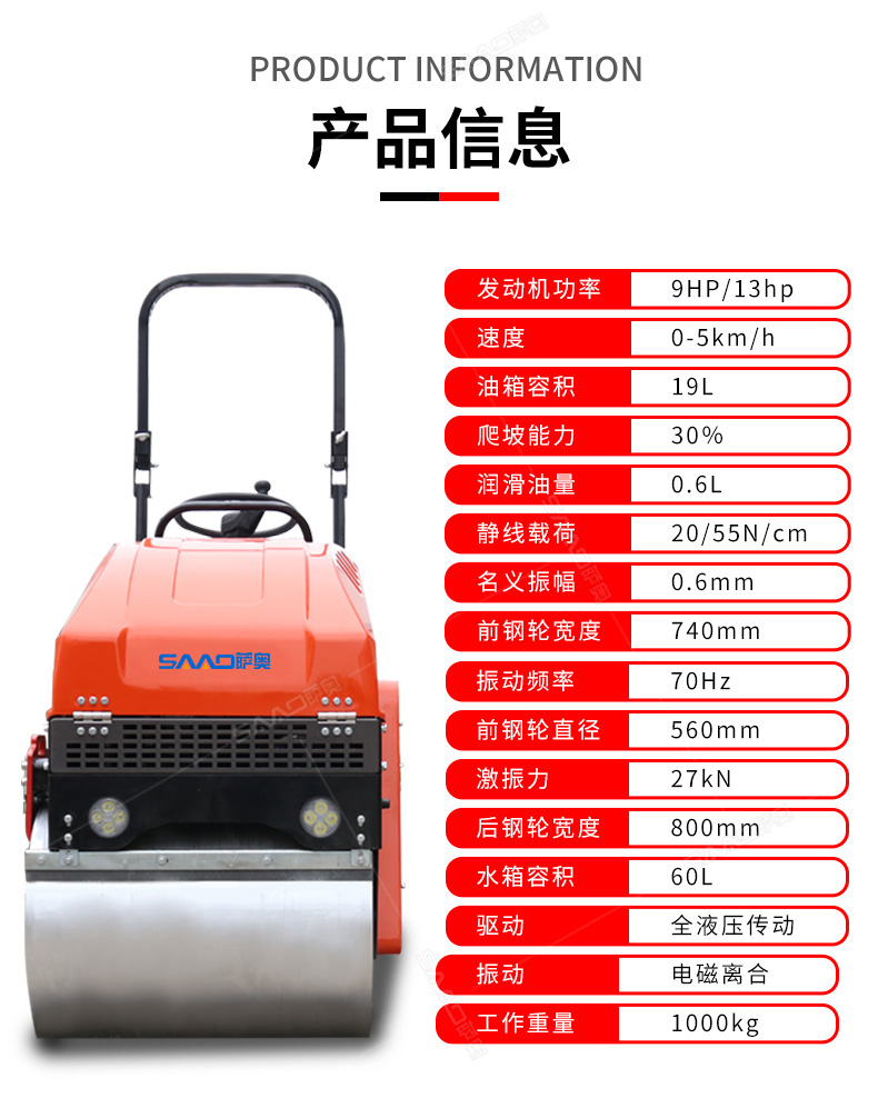 1t小型座駕壓路機體積小,行走靈活,可以用于瀝青壓實、回填作業、溝槽壓實作業、體育場地等壓實作業,應用范圍廣,性價比高。經典橘紅色款非常受歡迎。